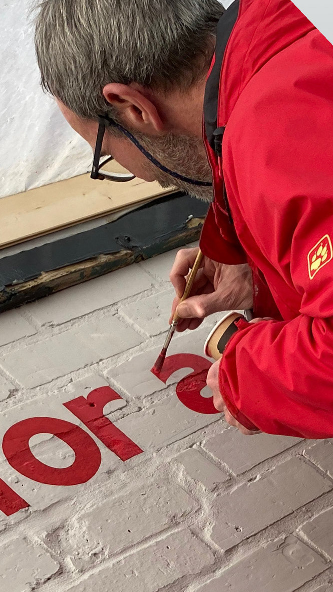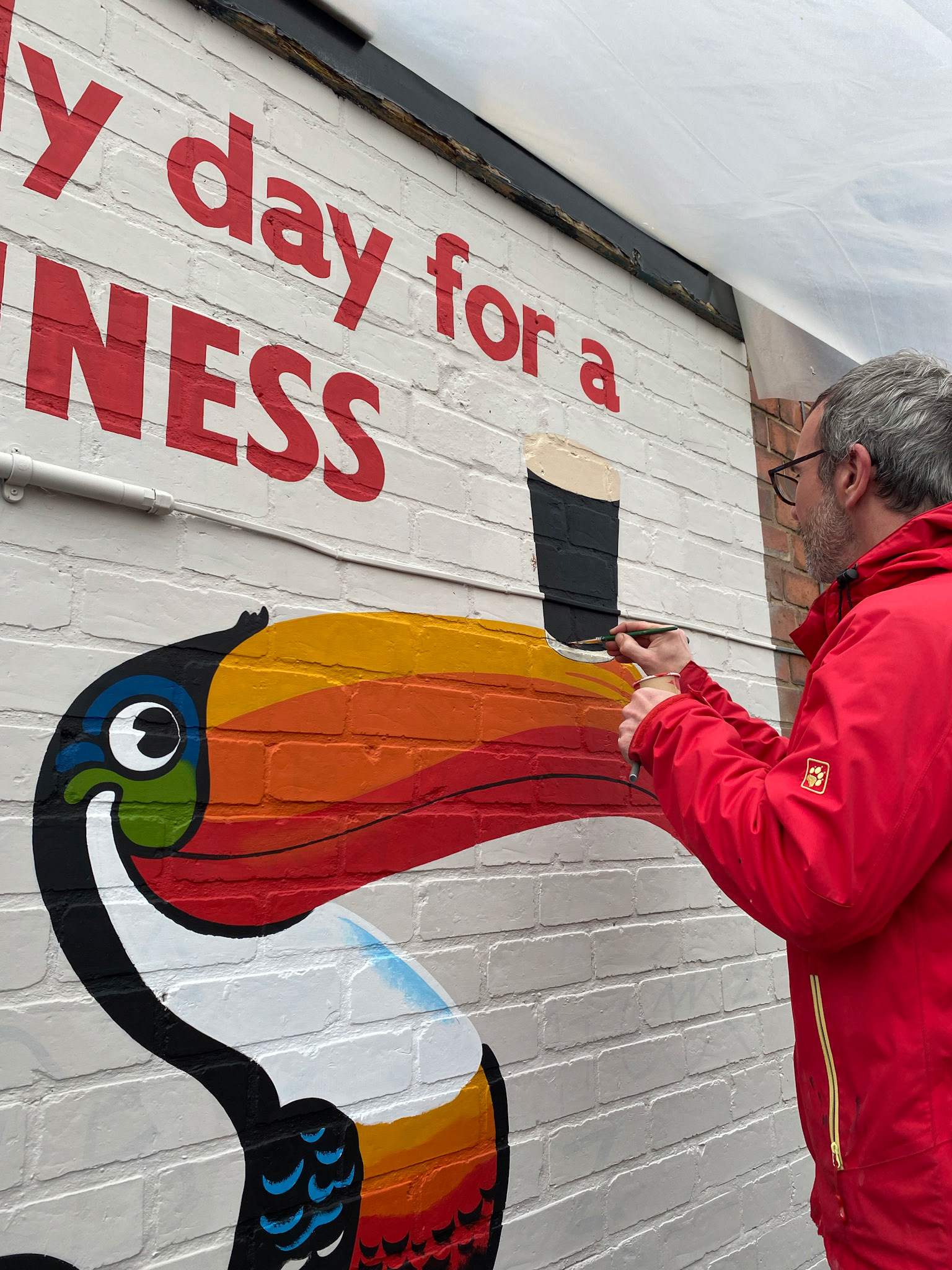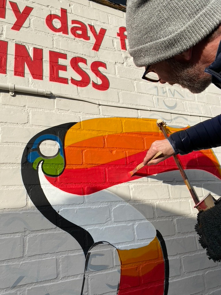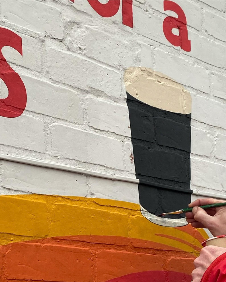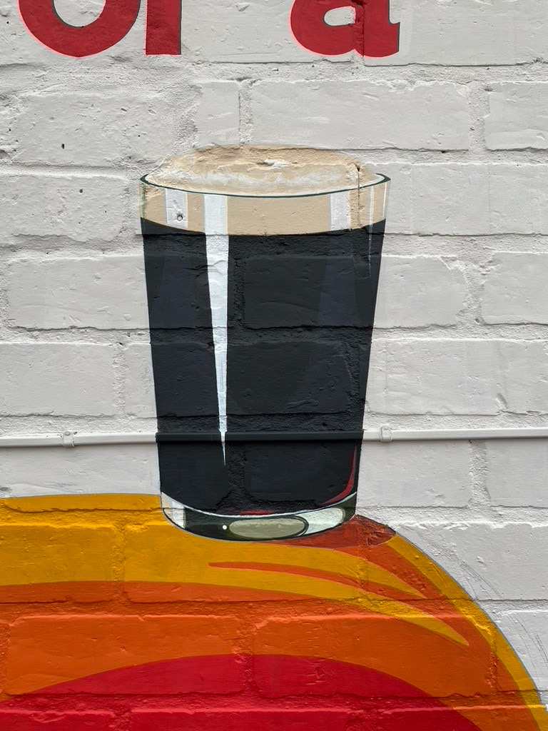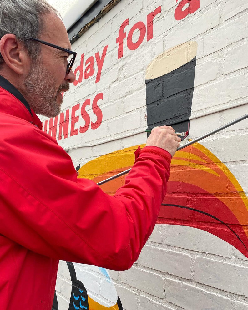 Hand Painted exterior wall mural using the original artwork Guinness commissioned artist Jon Gilroy for their advertising campaign many moons ago.