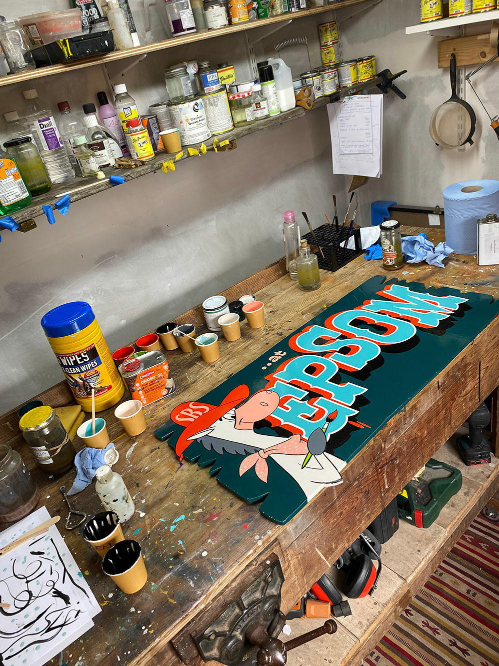 Panel painted for an annual Sign Writers meet. Signs are traditionally painted at such meets and then sold in an auction usually raising money for local charity.
