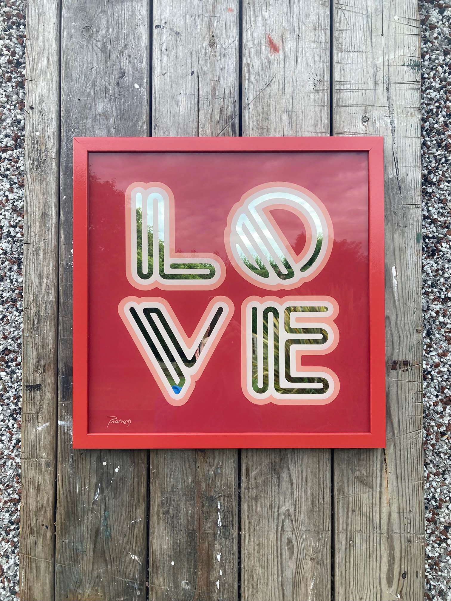 An original reverse glass gilded artwork adopting the famous piece by Robert Indiana with a letter form designed by myself.